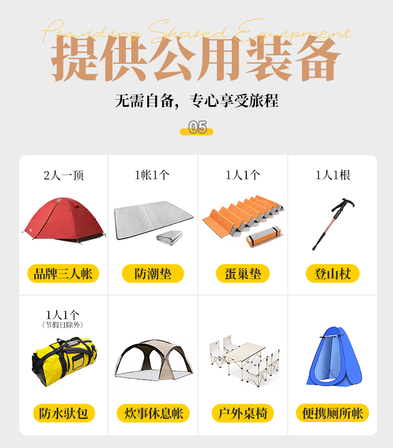 ● 驮牛:已包含徒步期间装备驮运费用(每人限重15KG,如超重每公斤200元,依次叠加)。