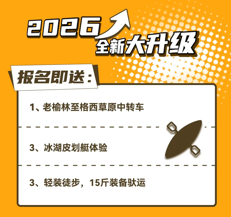 1、住宿:全程2晚住宿(老榆林村1晚、1晚大帐篷通铺);