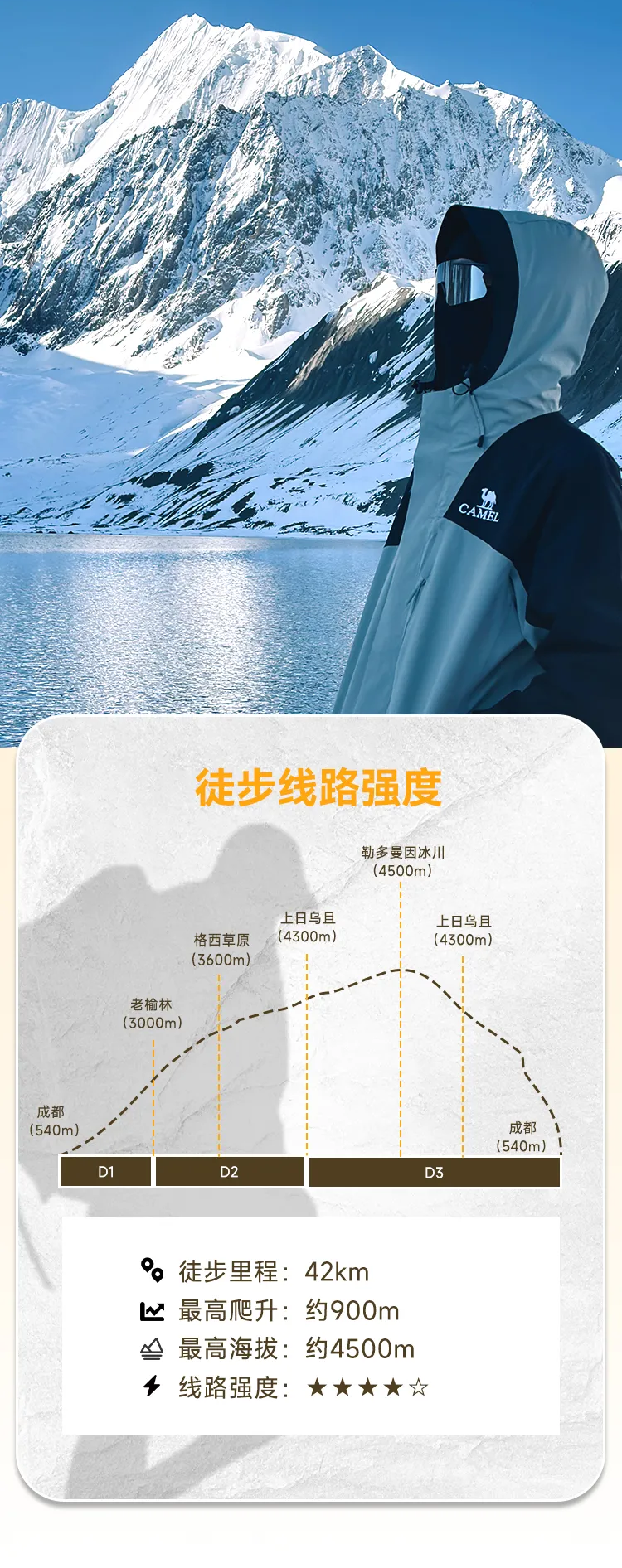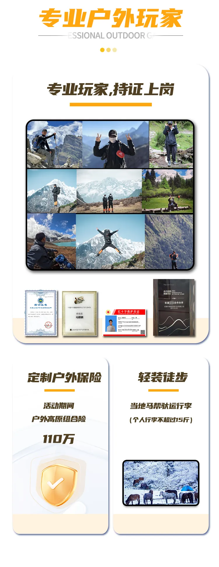 ▲ 适宜人群:本产品以高原徒步为主,适用于18-55岁身体健康、体能良好人士(如有超龄且身体状况良好,经常有户外运动可联系客服沟通确认)。