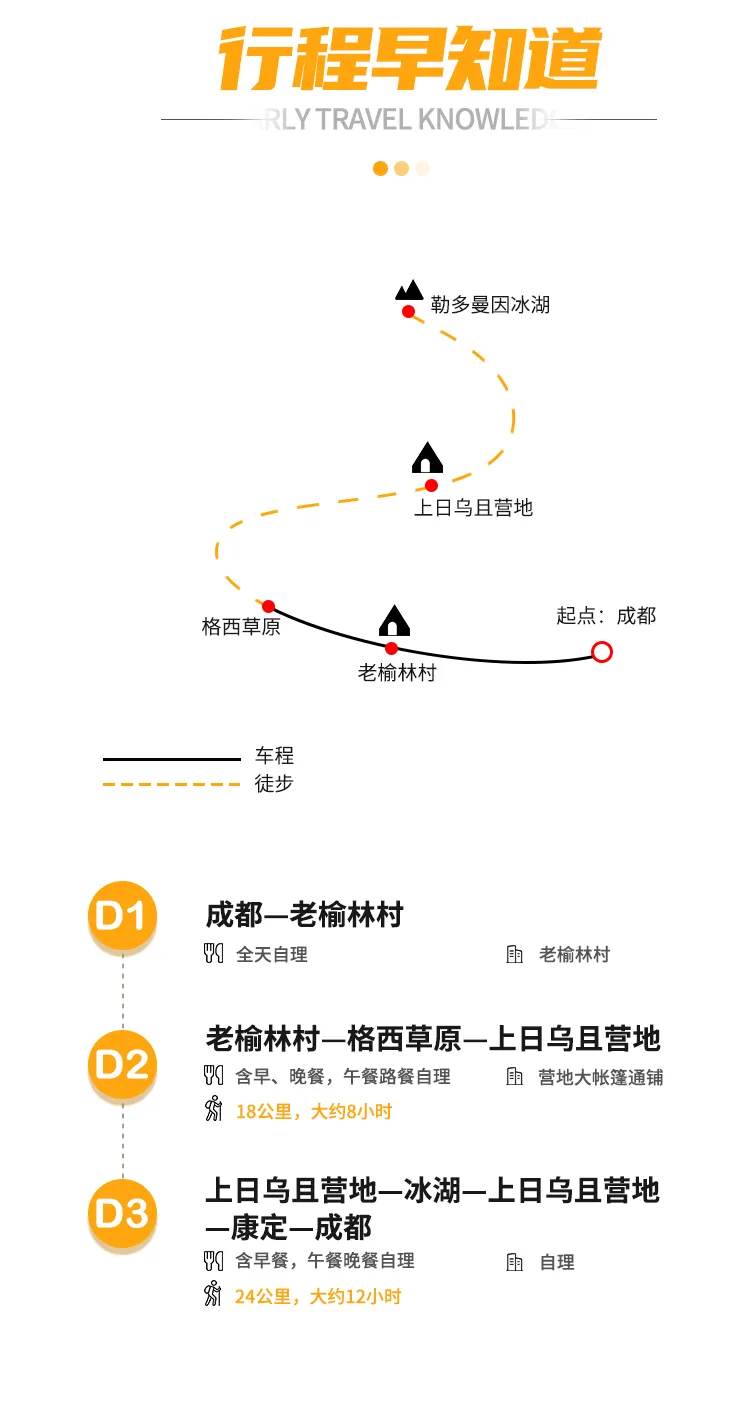 D3关于返程:最后一天几点抵达成都取决于大家下山的脚程,正常抵达成都时间为晚上22:00左右,由于四川的交通状况不是十分的理想,可能会因为修路、交通管制,堵车耽误时间,实际到达时间可能更晚。所以建议购买第二天离开成都的机票或火车票!
