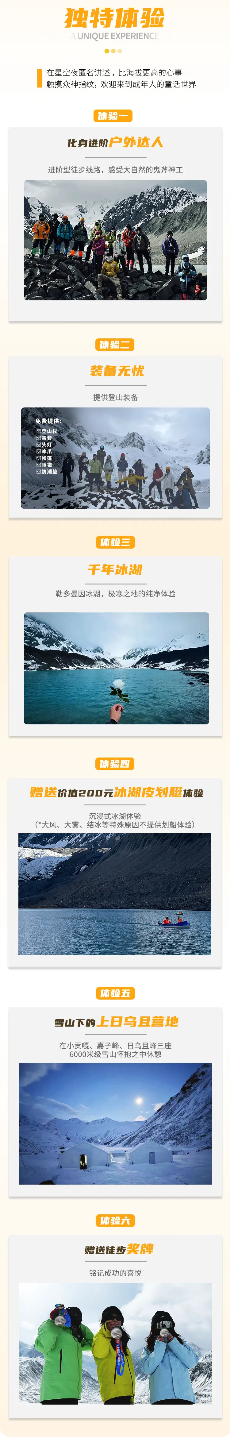④免费提供登山杖1根、雪套、冰爪、睡袋使用
